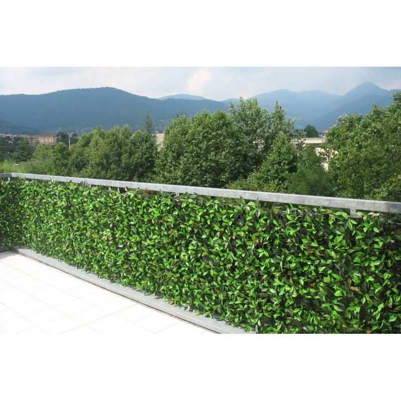 Siepe Artificiale Photinia in pannelli di plastica componibili da cm. 100×100 foglie in PVC. Resistente ai raggi U.V.