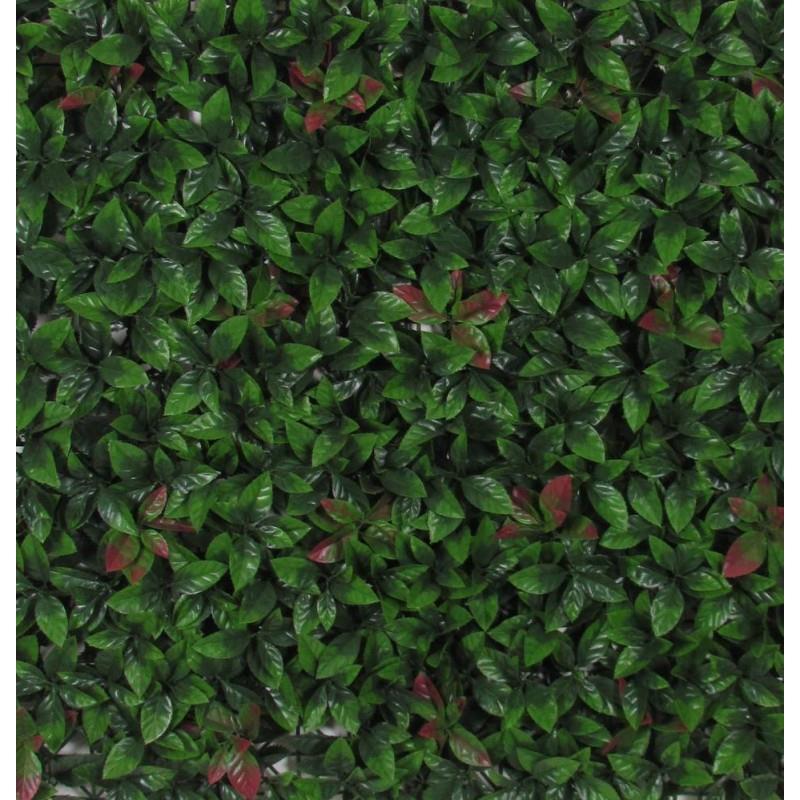 Siepe Artificiale Photinia in pannelli di plastica componibili da cm. 50×50 foglie in PVC. Resistente ai raggi U.V.